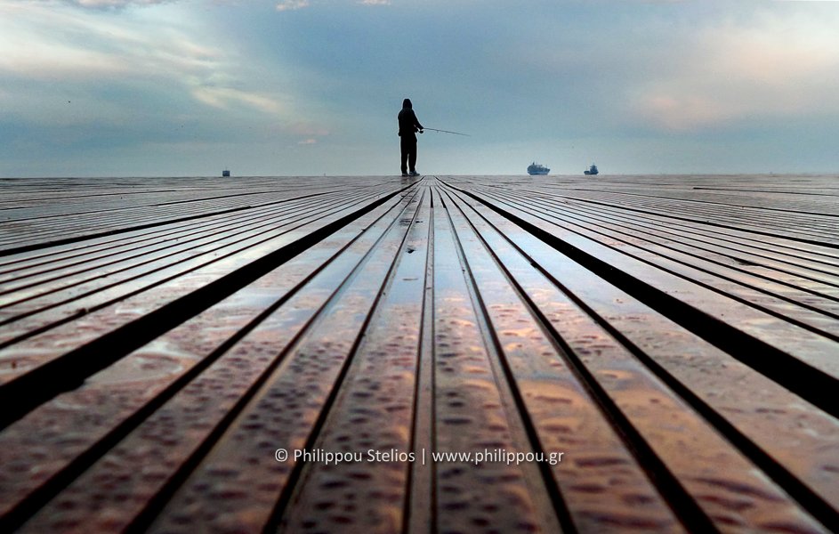 Η βροχή πέφτει αθόρυβα, ενώ στο βάθος ένας μοναχικός ψαράς στέκεται απέναντι στον βαρυφορτωμένο ουρανό. Μια εικόνα απόλυτης σιωπής και εσωτερικής δύναμης, εκεί όπου ο άνθρωπος στέκει μικρός μπροστά στη φύση — αλλά αμετακίνητος.