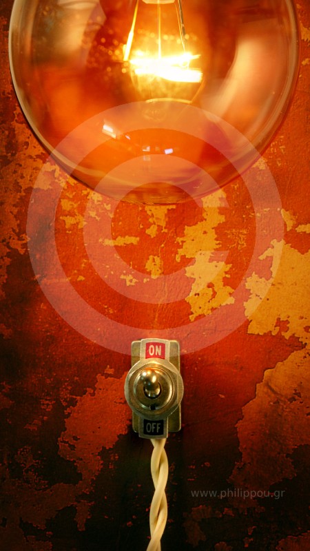 Ένας vintage διακόπτης φωτός, με την ένδειξη “ON”, φωτίζεται από το ζεστό φως μιας λάμπας. Το σκουριασμένο, παλιό φόντο δημιουργεί μια ατμόσφαιρα νοσταλγίας και βιομηχανικής αισθητικής. Αυτή η εικόνα αποτελεί μια σύγχρονη ερμηνεία της ιδέας, της δημιουργίας και της ενέργειας, υπενθυμίζοντας μας ότι με μια απλή κίνηση, μπορούμε να φωτίσουμε τον κόσμο γύρω μας. Είναι ένα έργο που συνδυάζει το παλιό με το νέο, την τεχνολογία με την τέχνη.