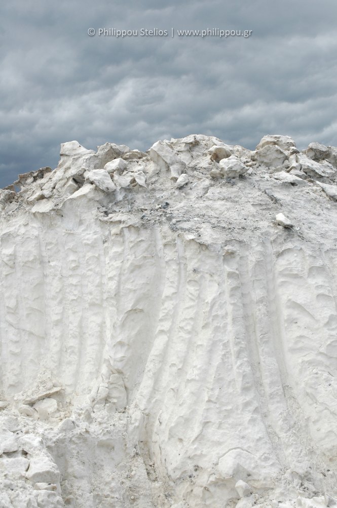 Ένα βουνό αλάτι στέκεται αλύγιστο, καρτερώντας το ξέσπασμα της θύελλας. Ο ουρανός, βαριά φορτωμένος με σύννεφα, μοιάζει να κρατάει την ανάσα του, σαν να περιμένει να γεμίσει τη γη με βροχή και μυστικά. Η γαλήνη πριν τη βροχή, η σιωπή πριν το κύμα.